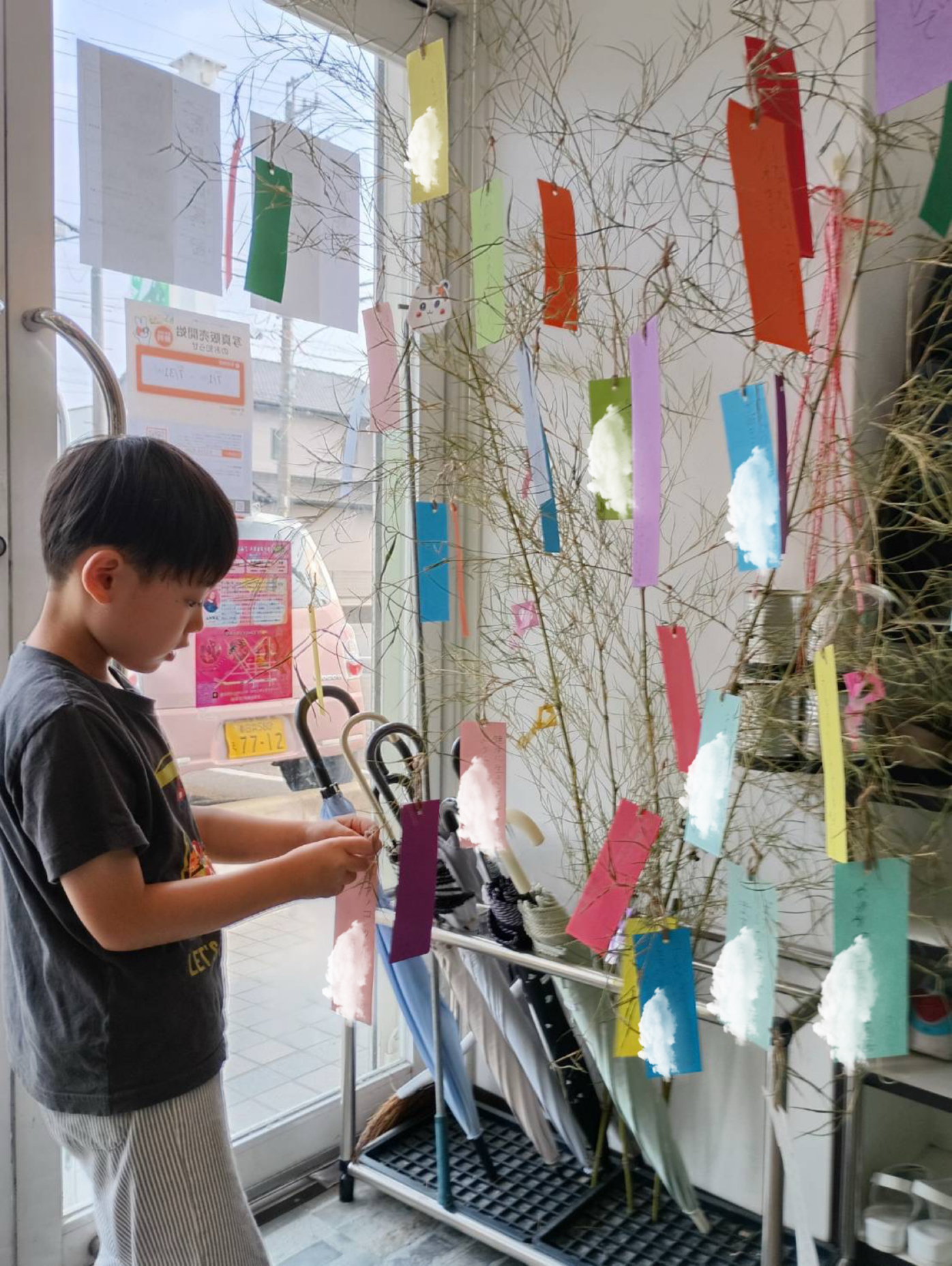 来週の月曜日は7月7日。 そうです、七夕さまの日という事で 昨日からみんなのお願い事を短冊に書いたり、 折り紙でキレイな飾りを作っていたのでした😊 そしておやつの後は笹の枝にみんなで飾り付け。 みんなの可愛らしいお願い事でいっぱいの ステキな七夕かざりの出来上がり🎋 お迎えの時に是非ご覧になって下さい😊 ……