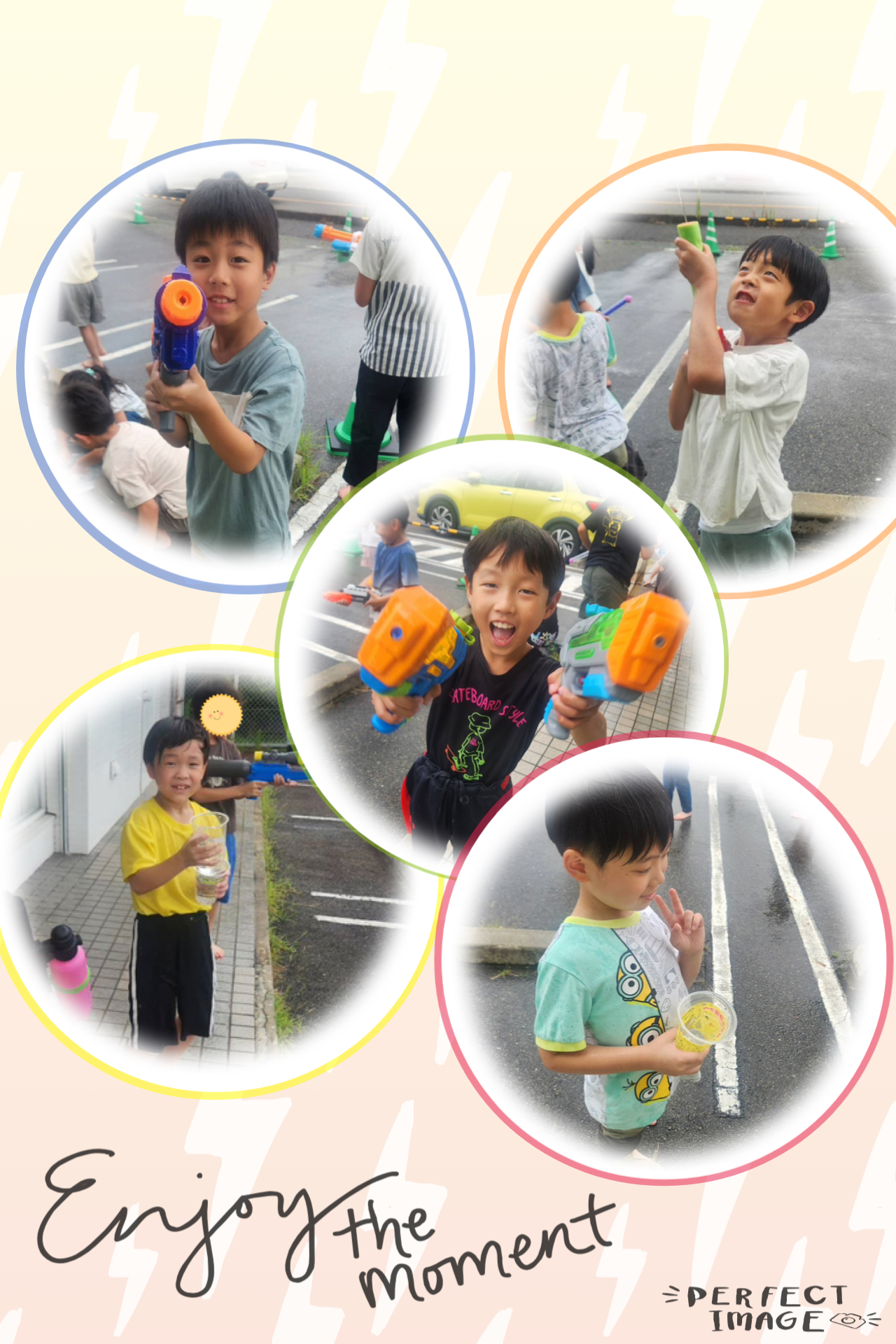 今日から懇談会が始まったので、 子供達はいつもより早く帰って来ました! 「先生、今日はたくさん遊べるね😊」 と、いう事でおやつのおにぎりを食べたあとは 駐車場に出て水遊びをすることに🔫 しばらくすると、ポツポツと雨が降り始めたのですが、 子どもたちは夢中でお水をかけ合って遊んでいました🤭 明日も元気にALL4で遊びましょうね😊 ……
