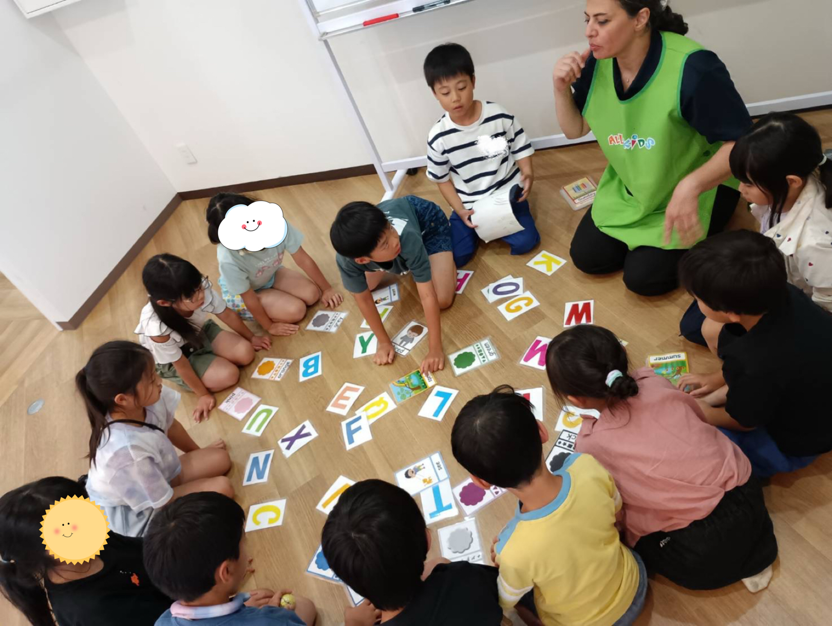 今日のイングリッシュタイムは 英語のカードを使ったかるた大会! ジャファリ先生が出すヒントをよく聞いて… 「あった!」 と、カードに飛びついていました🤭 その後は自由遊び。 こちらはビリヤードに夢中の様子🎱 よく見ると、何一つだけ大きな球が🤭 自分たちで作った球で遊んでみたかったんですって🤭 また明日もALL4で楽しく……