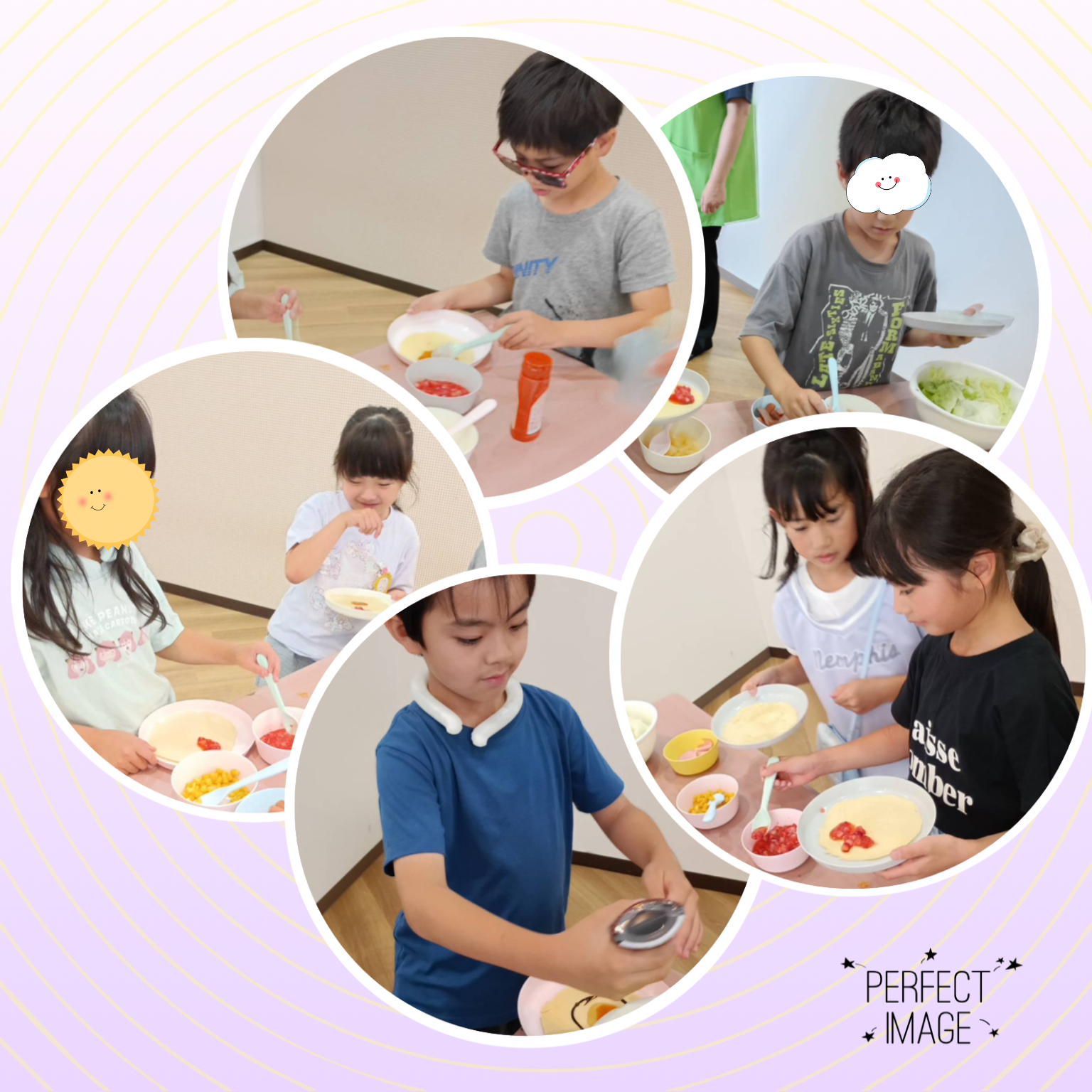 今日は楽しみにしていたクッキングの日 先生から作り方のお話を聞いた後で まずはクレープ生地の上に ベリーや白桃、ハムやウインナーなど お好みの具材を乗せて トッピングにホイップクリームやチョコソース マヨネーズ&ケチャップをプラス😊 自分でキレイに包んだら出来上がり! クレープを巻くのが初めてだったお友達には ……