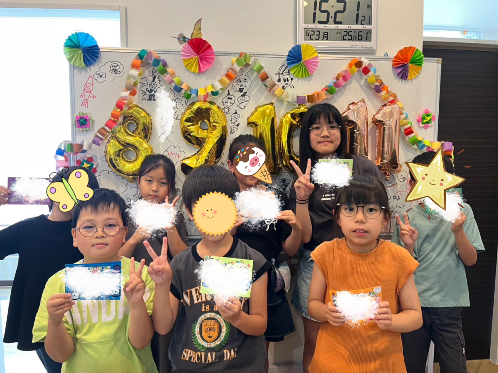 今日は6月生まれのお友だちのお誕生日会の日🎂 宿題を済ませたお友達がみんなで協力して ホワイトボードをにぎやかに飾り付けてくれました🎉 準備が整ったら、お誕生日会のはじまりはじまり〜👏 今月は8歳から11歳のお友達8人のお祝い! まずは恒例の質問タイムから 「大好きなポケモンを教えて下さい!」 「好きな食べ物は何ですか?」 と、お友達からの……