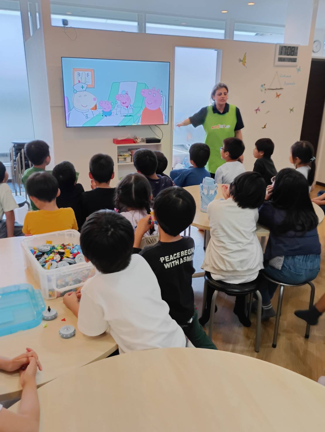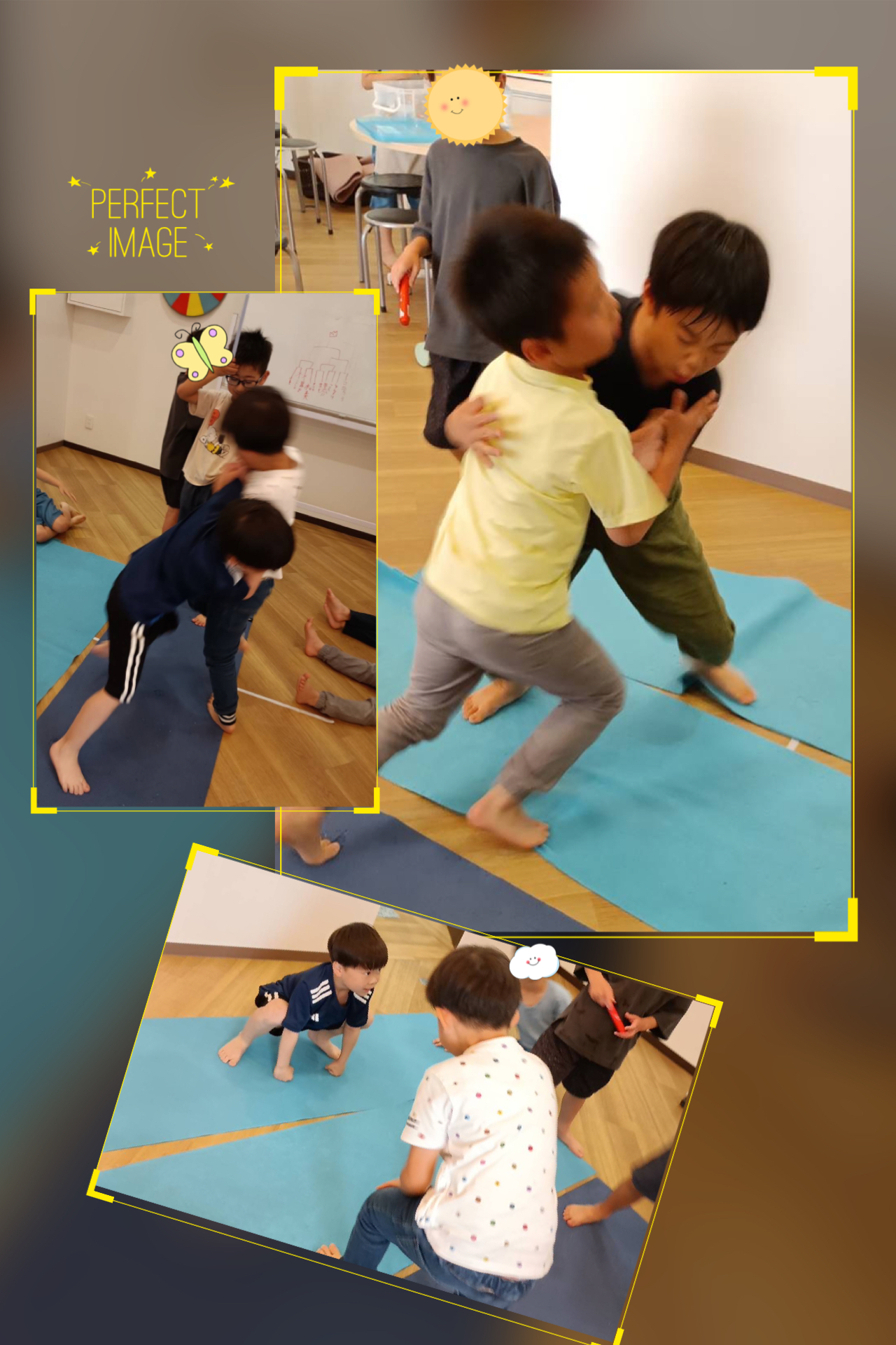 お休み明けの月曜日、 学校からの帰り道は、お友達と週末のでき事を 楽しくお話ししながら帰ってきました😊 今日のイングリッシュタイムでは 英語で誰と一緒に住んでいるかの紹介をしてもらいましたよ。 イングリッシュの後のこと、 男の子たちがマットを敷いて お相撲をして遊び出しました。 トーナメント表を作って 一番になった人にはLaQ……