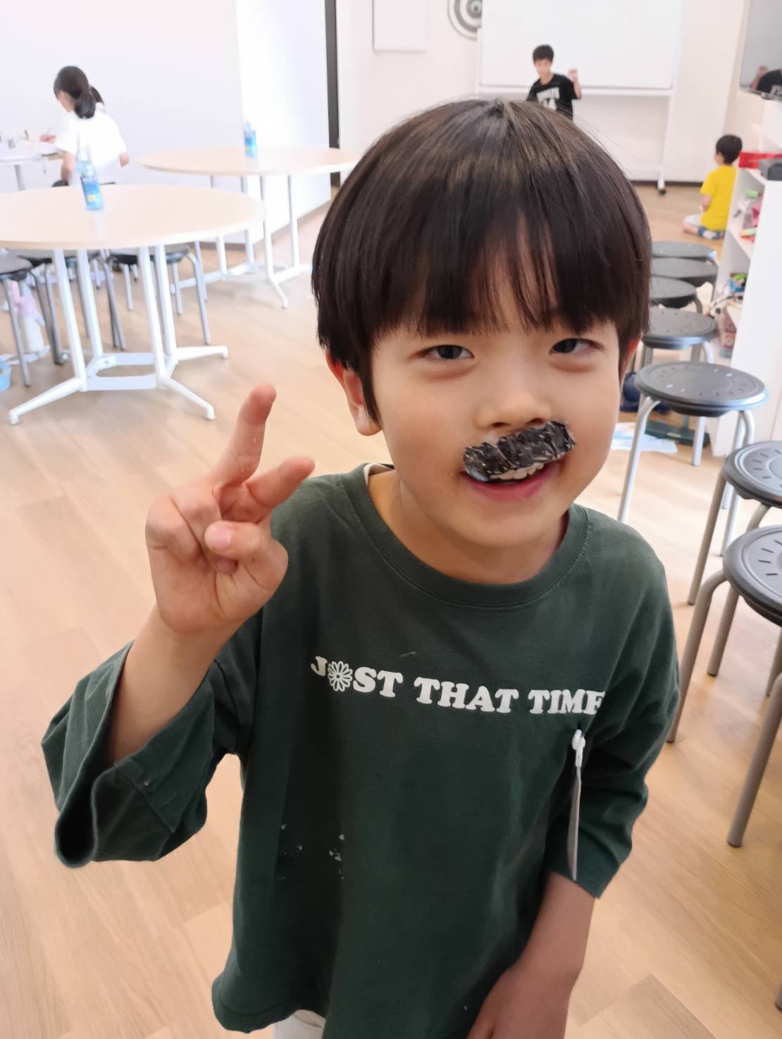 今日は曇り空で、朝から肌寒かったためか いつもは半袖のお友だちも長袖を来て帰ってきました😊 宿題を済ませて少し遊んでいると どこからか美味しそうなにおいが😋 今日はおやつに味噌焼きおにぎりを作っていたのでした🤭 美味しいおやつを食べたあとは ジャファリ先生のイングリッシュタイムがありましたよ 今日は英語の動……