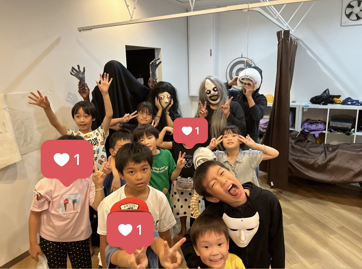 今日は夏休み1発目の出校日! そして子供たちからリクエストのあったお化け屋敷の日でした! 学校から帰ってきてみんなで準備! お弁当を食べた後前からグループ分けしたメンバーで順番に回ってもらいました☆ 先生たちも張り切ってお面や服を用意したんです!笑 楽しんでもらえてよかったー!! そしてなんと本日お誕生日の子が! みんなでお祝いし……