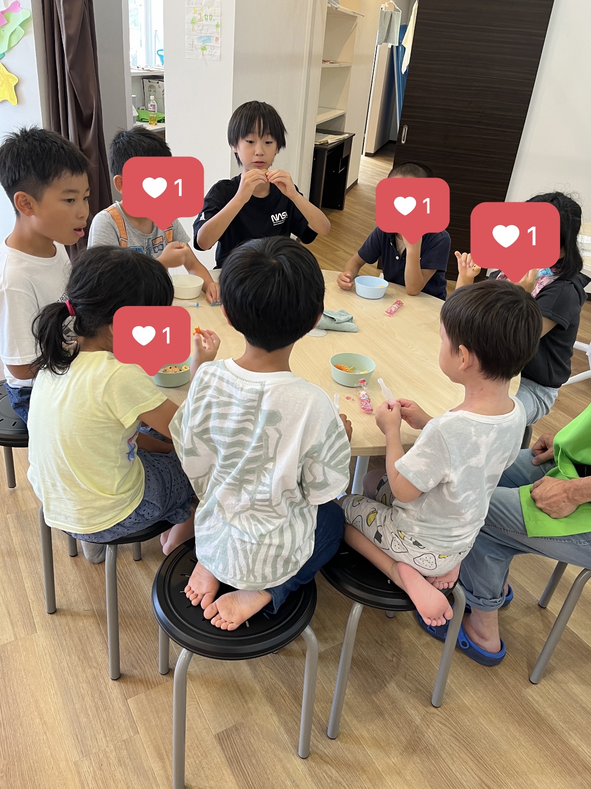 今日は待ちに待ったカレー作りの日でした! プランターで5月から植えた野菜たち(ピーマン、ナス、オクラ)をカレーに、きゅうりは足し増ししてカニカマとトマトとサラダに✨️ 朝からバローに買い出しとお料理チームと分かれて過ごしました。 お料理をやりたいのは……やっぱり女の子!! そこへジョン先生が来て、本日スポットでアフタースクー……