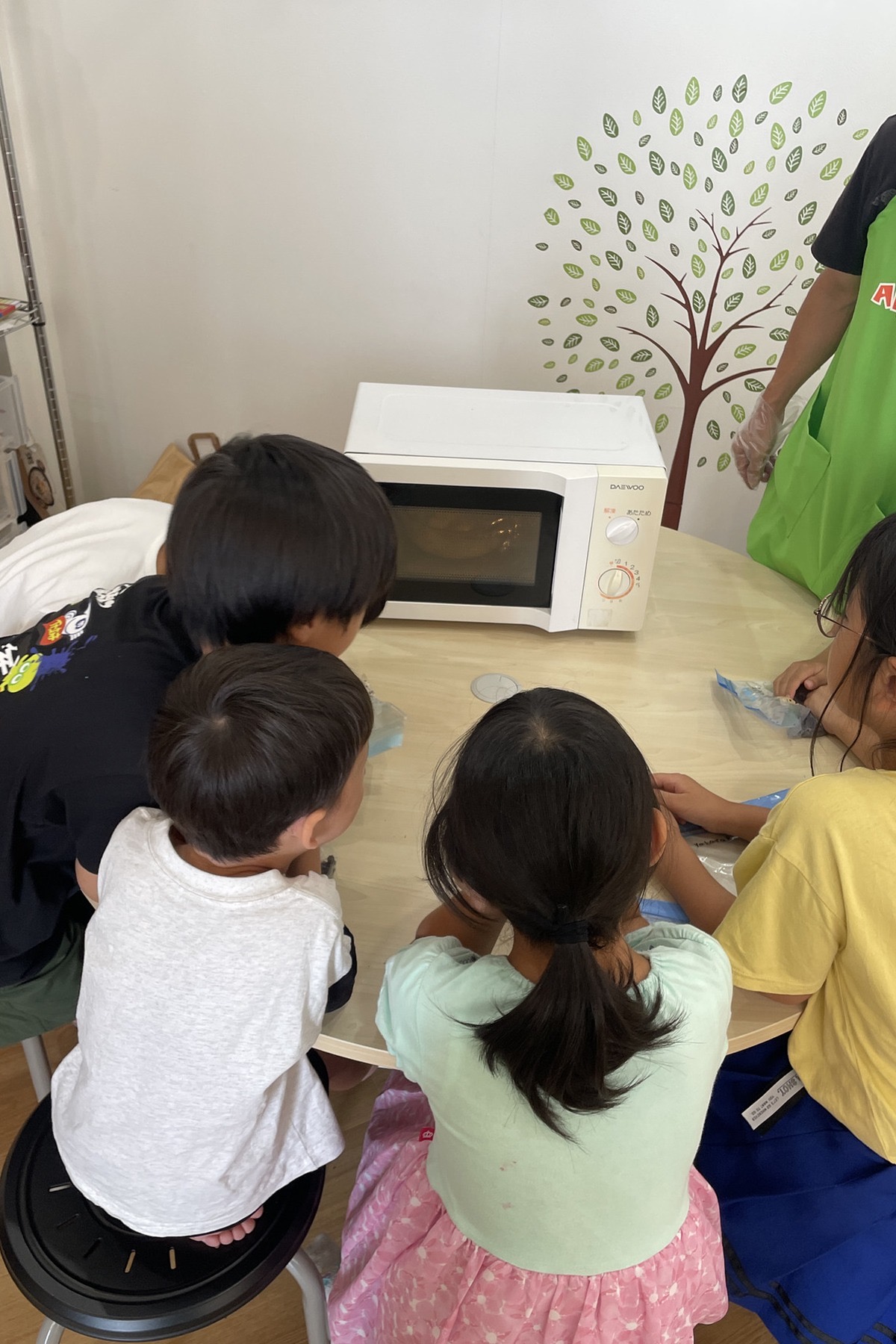 今日はみんなが楽しみにしていた、「マシュマロでアイス作り」でした!! まずはどのように作るのかの話を聞きました。 こども達は、ZIPロックにオレオクッキーを入れて潰します。 あー!!ちょっと細かくし過ぎている??かな?? でもそれもこれもどんな風になるか、楽しみの1つです。 この袋の中に、牛乳の中にマシ……