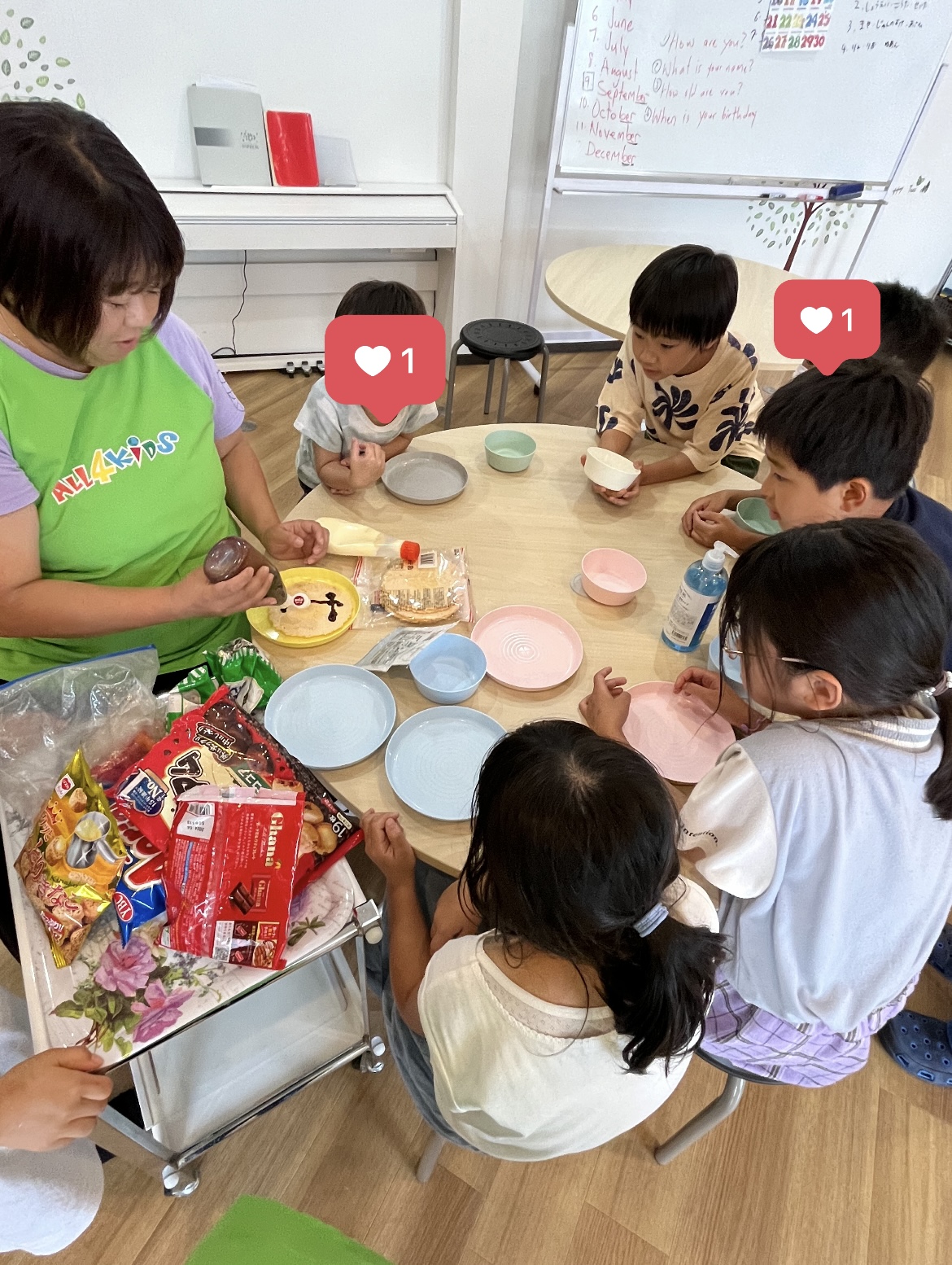 今日は雨でお外遊びができなかったので おやつとイングリッシュの後にみんなで画用紙を使ってパン屋さんを作りました!! POPや名札もちゃんと作ってお店の名前も話し合い「ALL4パン」に決定☆ 作り終わった頃にはお迎えの時間だったのであまりゆっくり遊べなかったね… 明日以降いっぱい遊びましょう☆ ……