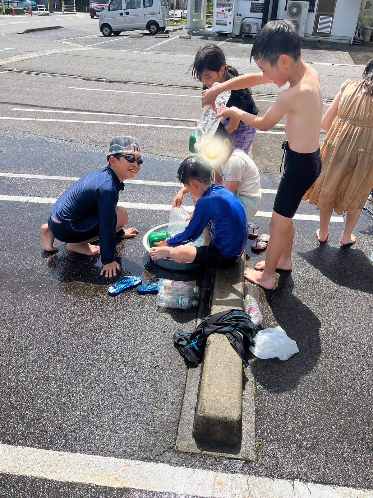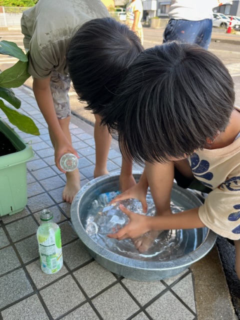 今日は昨日と変わってとっても暑かったですね!!子どもたちも勿論のこと、『今日水遊びしたい~!!』と言って下校してきました!! 今日は学校でとプールがあったようで、水着を持っていた子どもたちは早速お着替えをし、いざ水遊び!! あれ? タライに入ってしまっている子もいますね(笑) ペットボトルなどを使って遊ぶだけでも、本当に楽しくて気持……