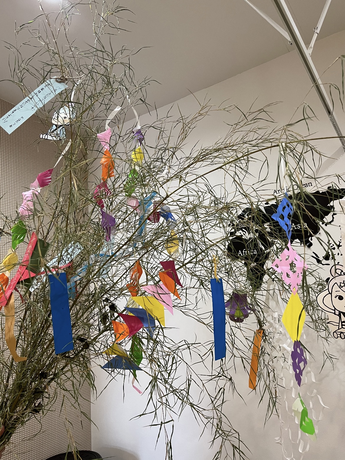 先日からみんなで作っていた七夕飾りが完成しました! 〇〇になれますように… 〇〇が欲しいです… などなど!みんなのお願い事が叶うといいですね♪♪ そして恒例の水遊び! プランターを覗いたらお野菜がとっても大きく育っていたので少し収穫しました! きゅうりとオクラ! 水遊び後のおやつでみんなで食べました……
