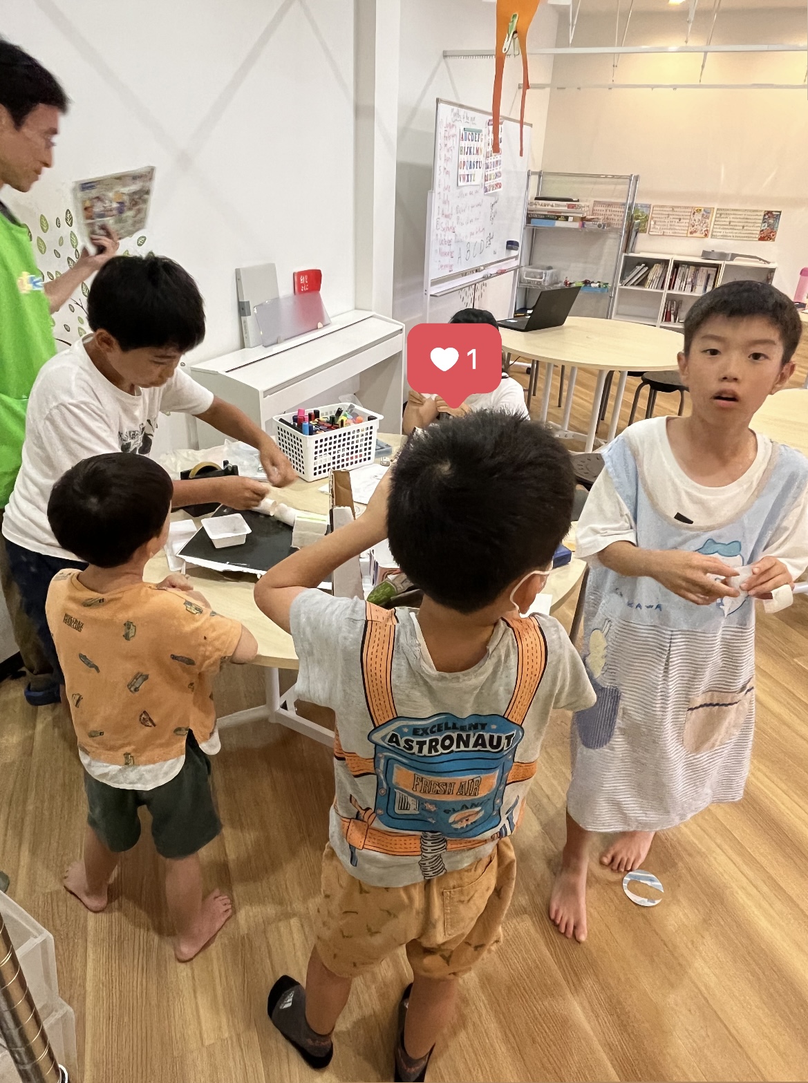 今日から週末まで子供達の帰りが早いので工作や水遊びを長い時間しました! 紙粘土にポスカで色をつけて好きなキャラクターや動物など作ってくれました☆ イングリッシュとおやつの後はお待ちかねの水遊び!! 牛乳パックで作った盾で水をガード?! アイデアが本当にすごい!子供達の発想に毎日驚かされています笑 明日も長時間!元気に遊びましょ……