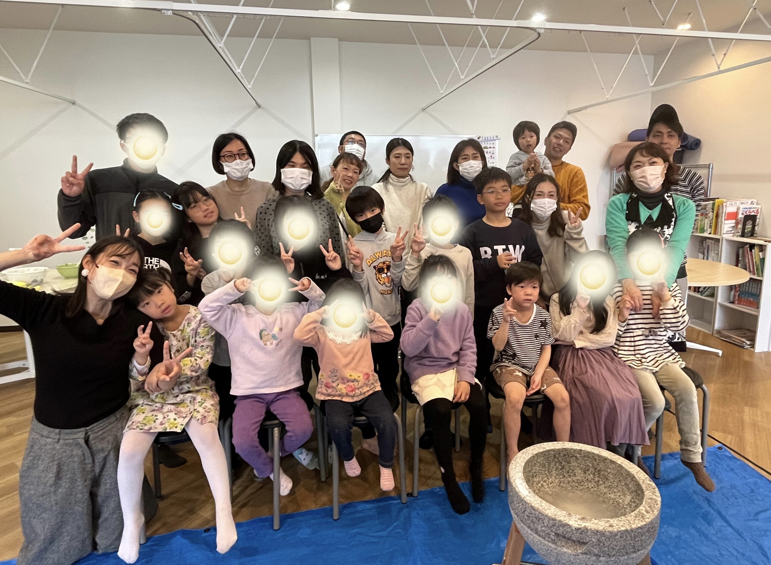 今日はイベント『お餅つき』でした。 子どももお家の方もおじいちゃまもおばあちゃまもたくさんきてくださいました。 さぁお餅をつきますよ!! お餅をついた後は、お餅を丸めていきました。 そしてたくさんお餅を色んな味で食べましたよ。 きな粉、あんこ、納豆、おろし大根…やはりきな粉は大人気でしたが、大人はおろし大根が人気でしたよ。 ……