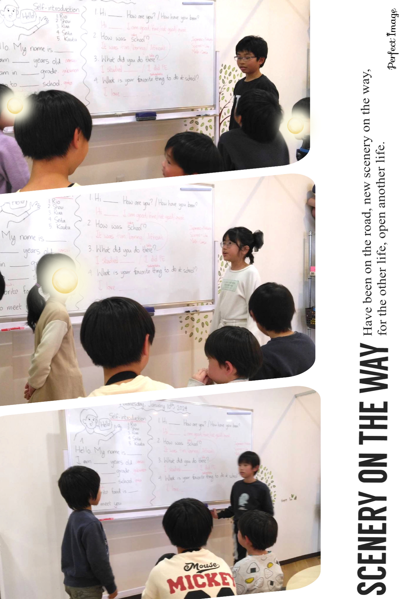 最近はペアになって学校の事についての質問したり、それに答えたりしています。
